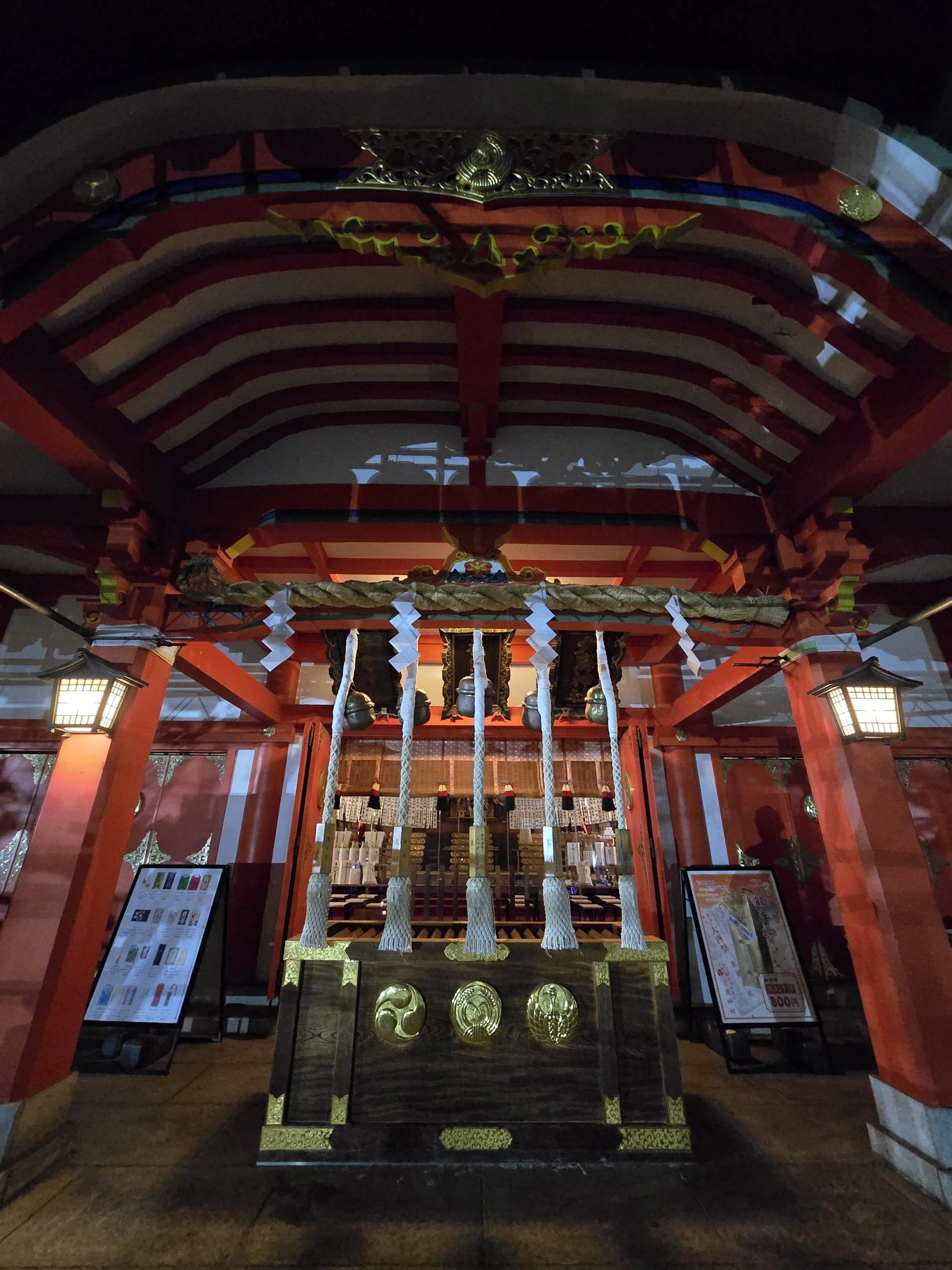 Before picking a bar, I walked up stairs to a large shrine just outside the bar area, Hanazono. It was closed, of course, but the doors were clear glass so I could see the ornate interior. As I was leaving, someone from the bar area approached the shrine slowly- gave his donation and then performed the standard ritual, which I’ll explain in a later entry.