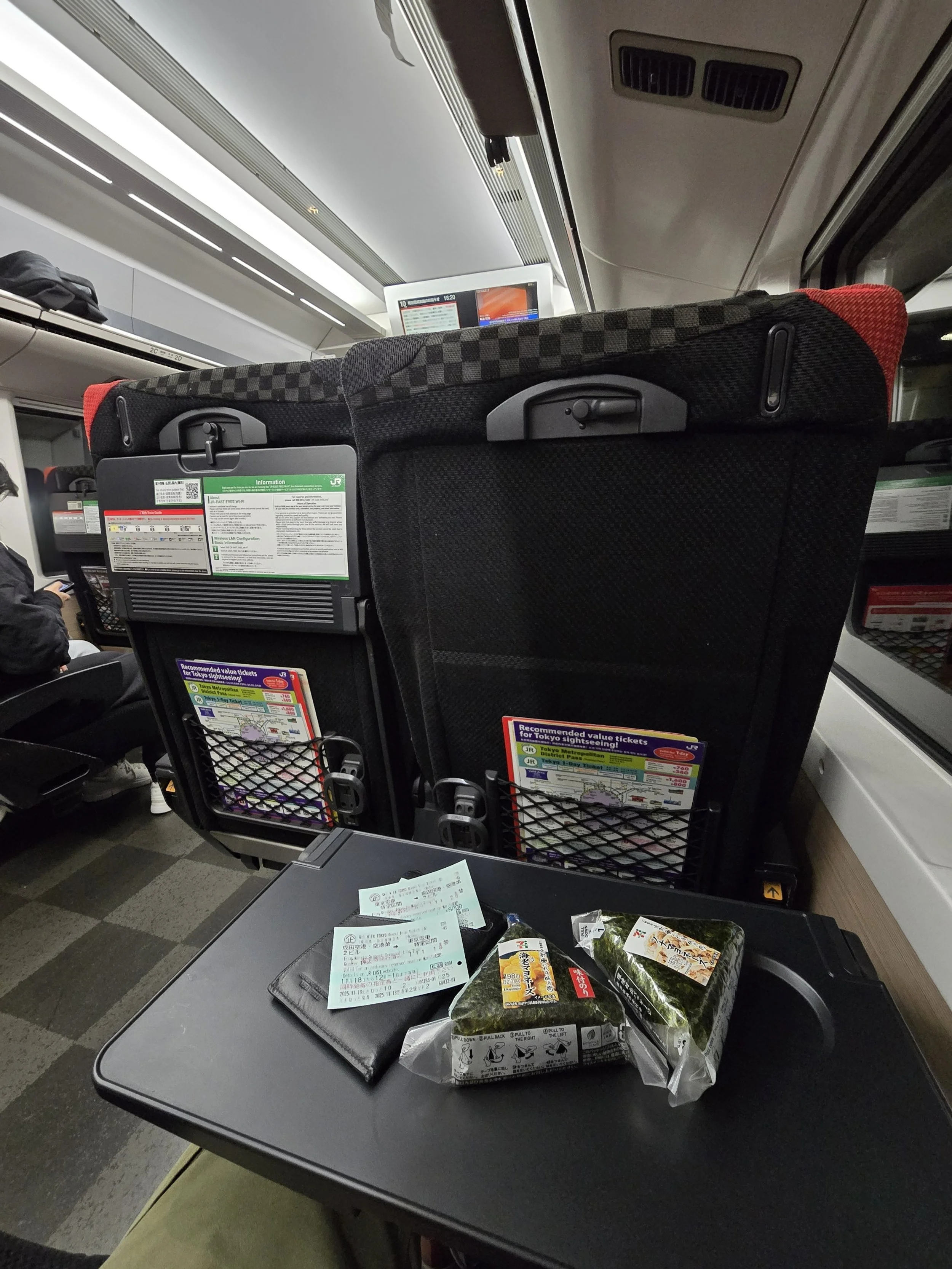 While in line for customs, I looked into the train options to get into town, landing on the Narita Express. I reserved a seat for both trips (today, and back to the airport at the end of my time here), and figured that was that. Turns out there was a little more to it than that.
